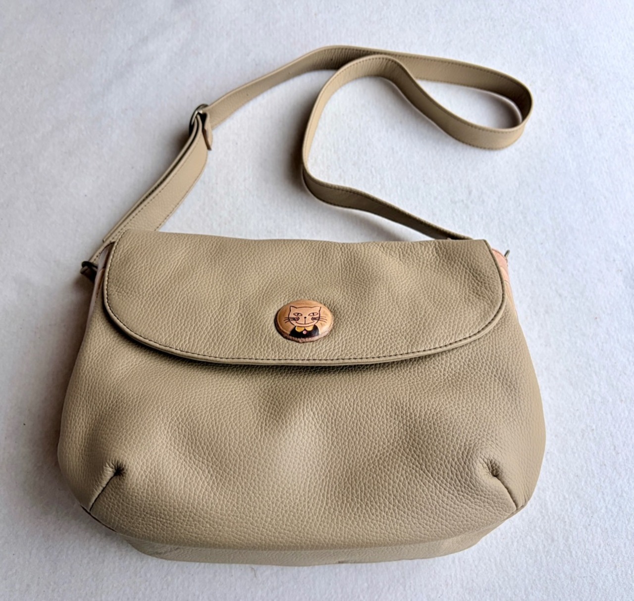 ソフトな牛革製です 柄は両サイドのマチの部分に有り