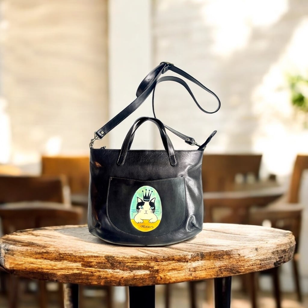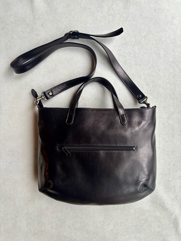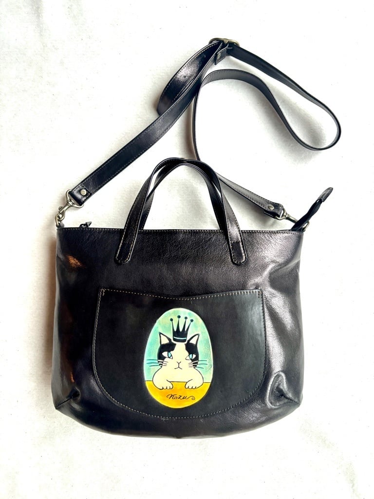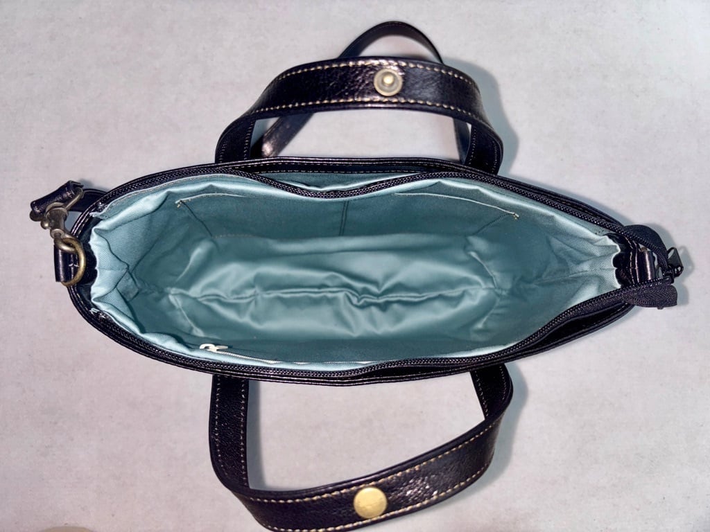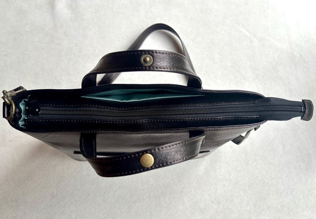 ソフトな牛革使用 口元のファスナーの開閉になります 口元脇にはポケットがあります
