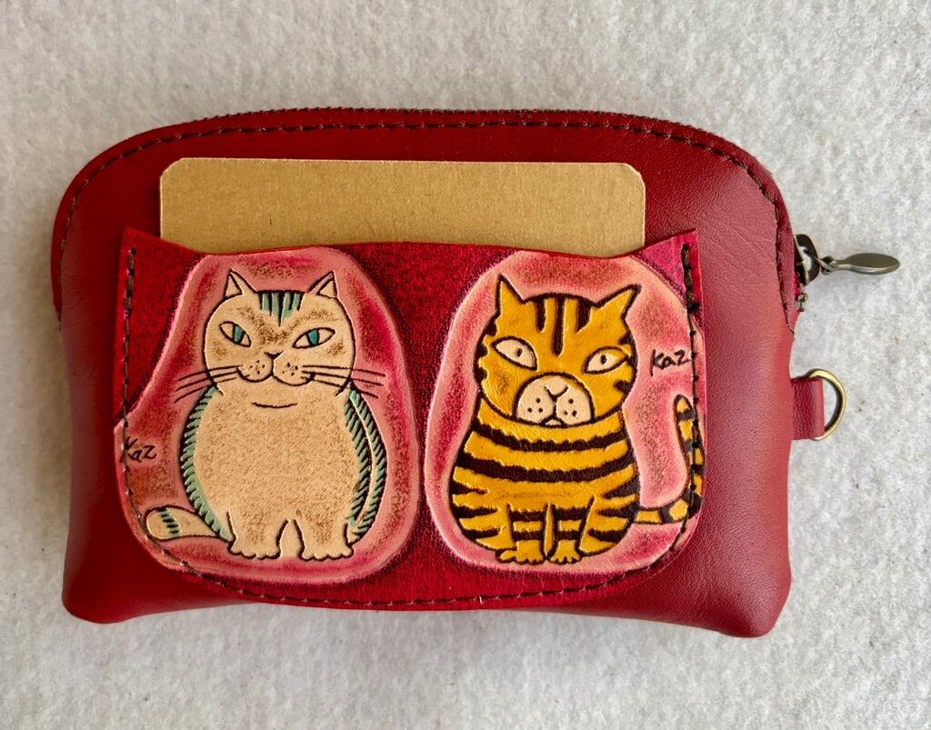 シンプルで使いやすいデザインの財布です。上質な牛革を使用しており、手触りが良く、使うごとに味わいが増す一品です。表と裏には柄が入ったポケットが配置されており、カードが入るサイズになってます