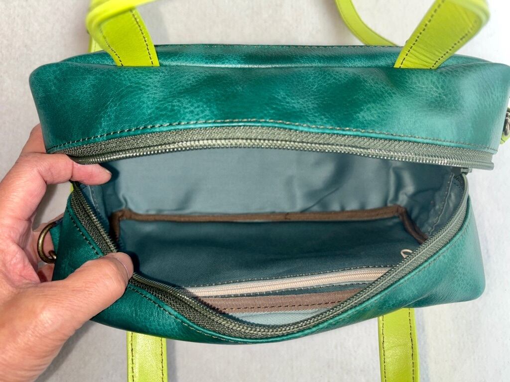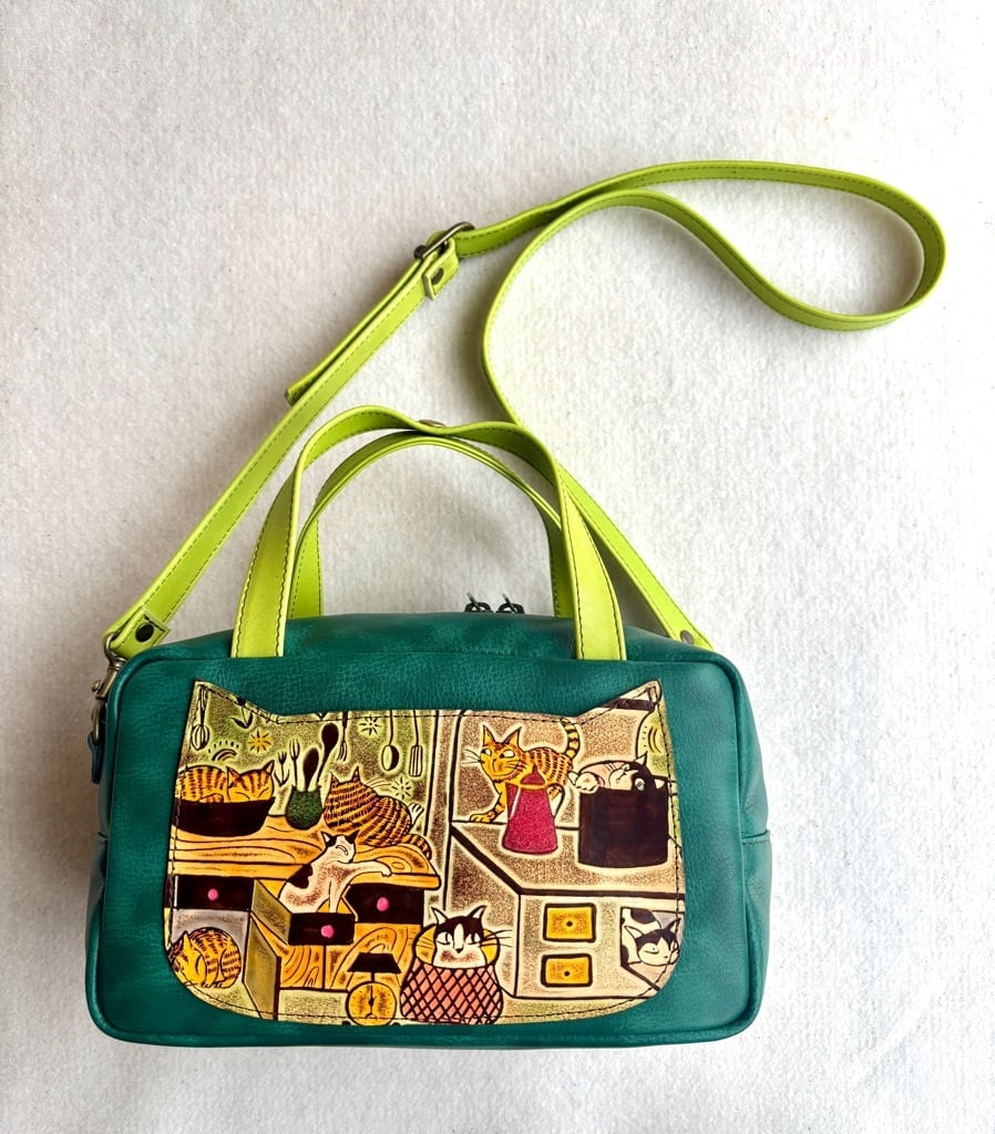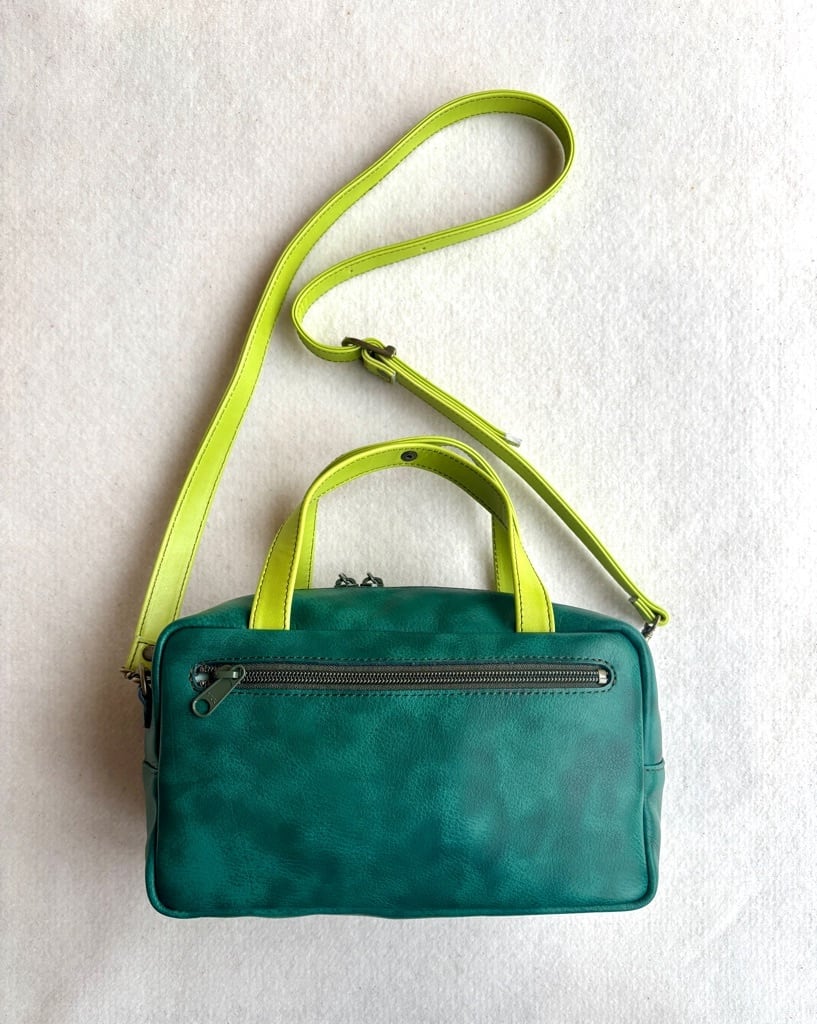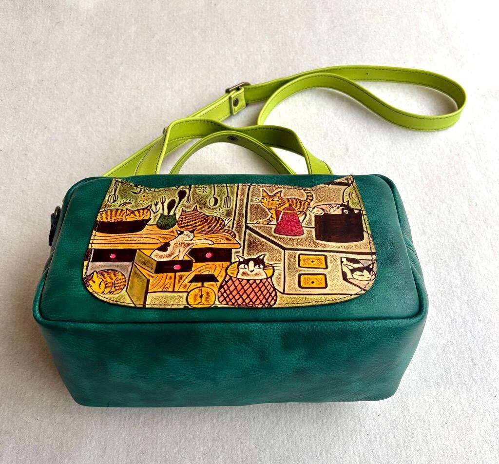 ソフトな牛革を使用したツーウェイバッグです 柄は押型で革染料で染めて仕上げています