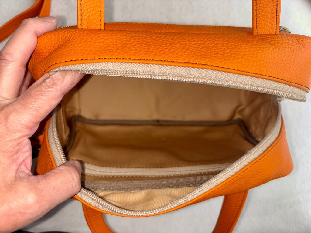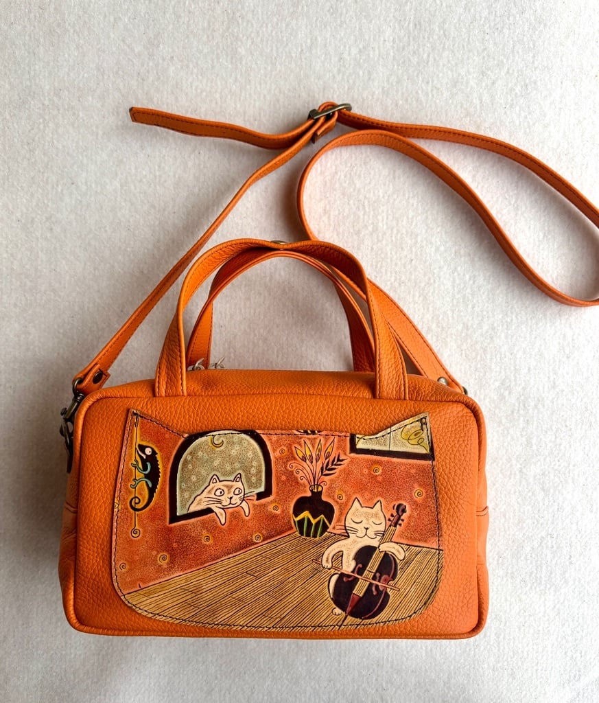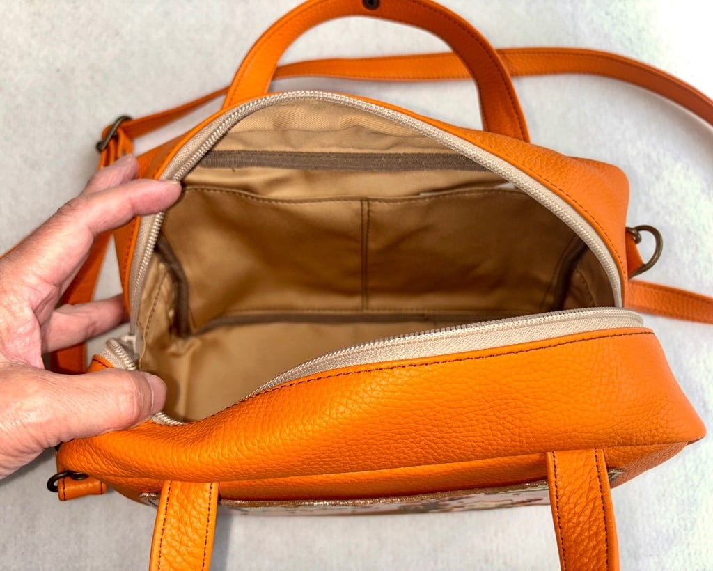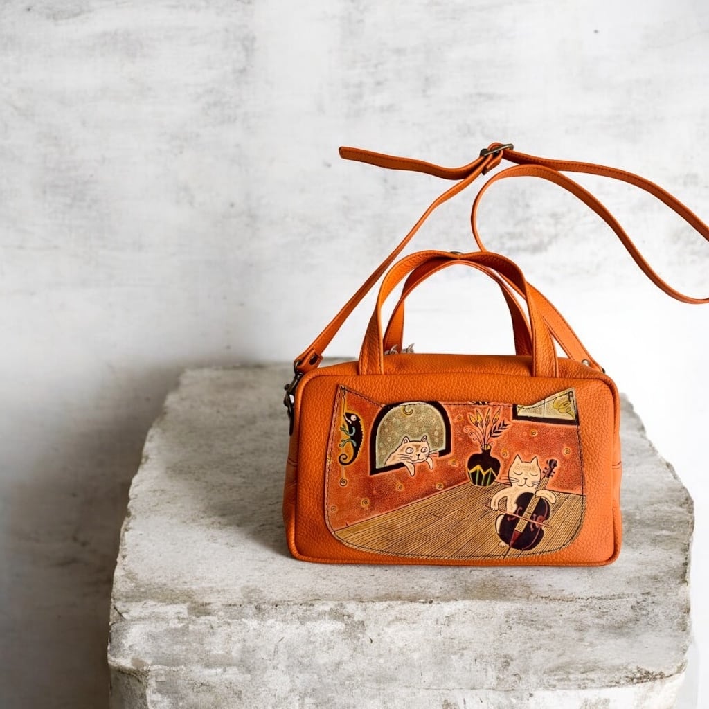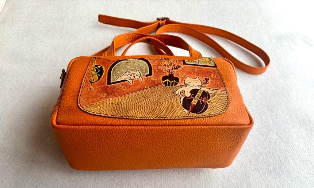 ソフトな牛革を使用したツーウェイバッグです 柄は押型で革染料で染めて仕上げています