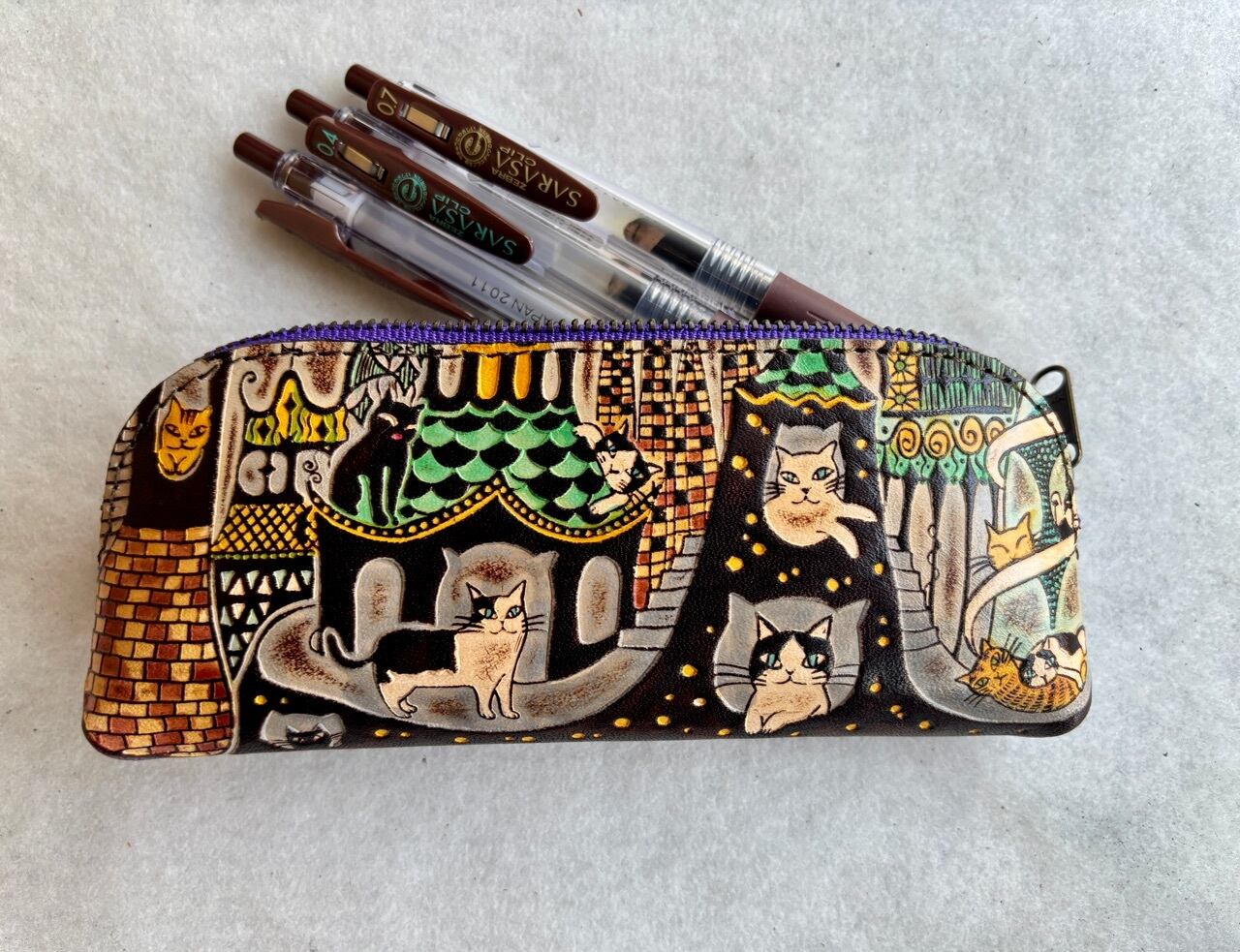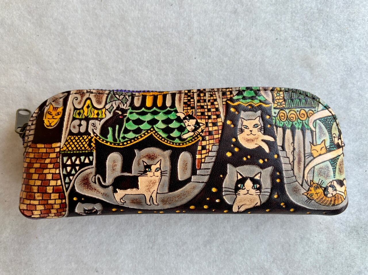 牛革製 柄は押型で全体を革染料で染めています