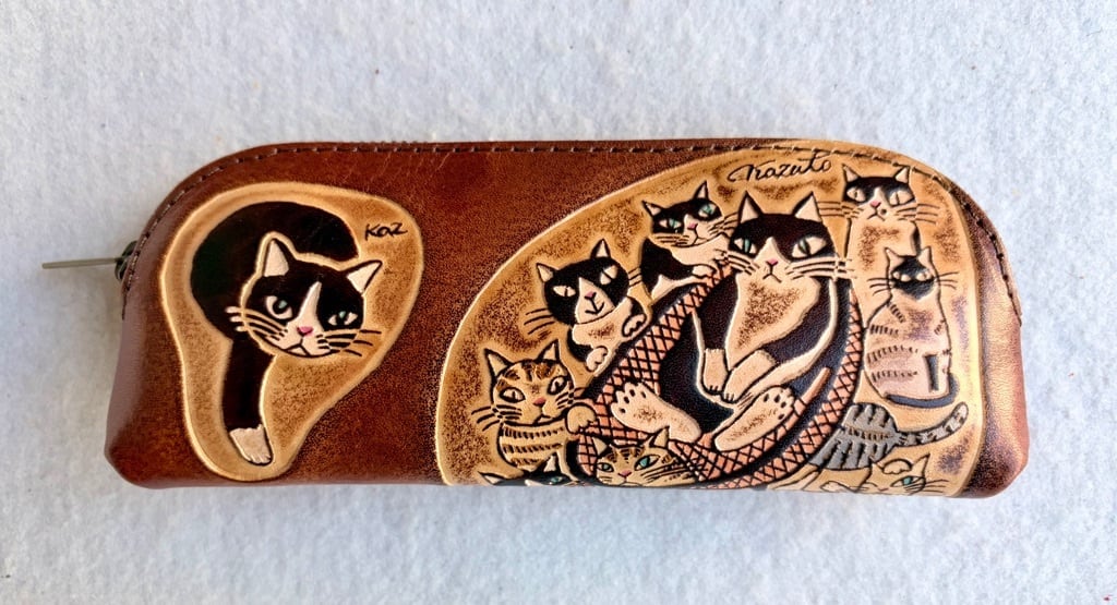 牛革製 柄は押型で全体を革染料で染めています