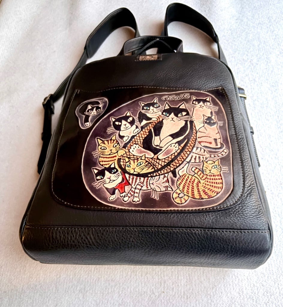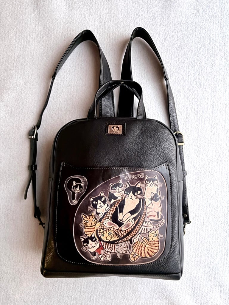 柄の前ポケット部分は型押しで革染料で仕上げています