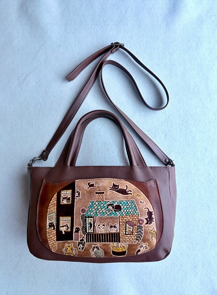 ソフトで細かいシボ有り牛革使用しています。柄部分は型押しで、革染料で仕上げています