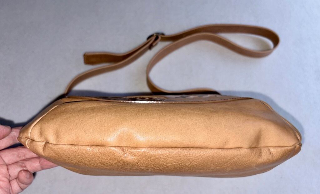 柄はワンポイントになっています。柄の部分は型押しで 革染料で染めています