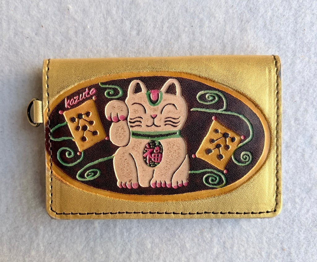 表のカード入れは 縦約9センチ 横約6.5センチのカード入ります